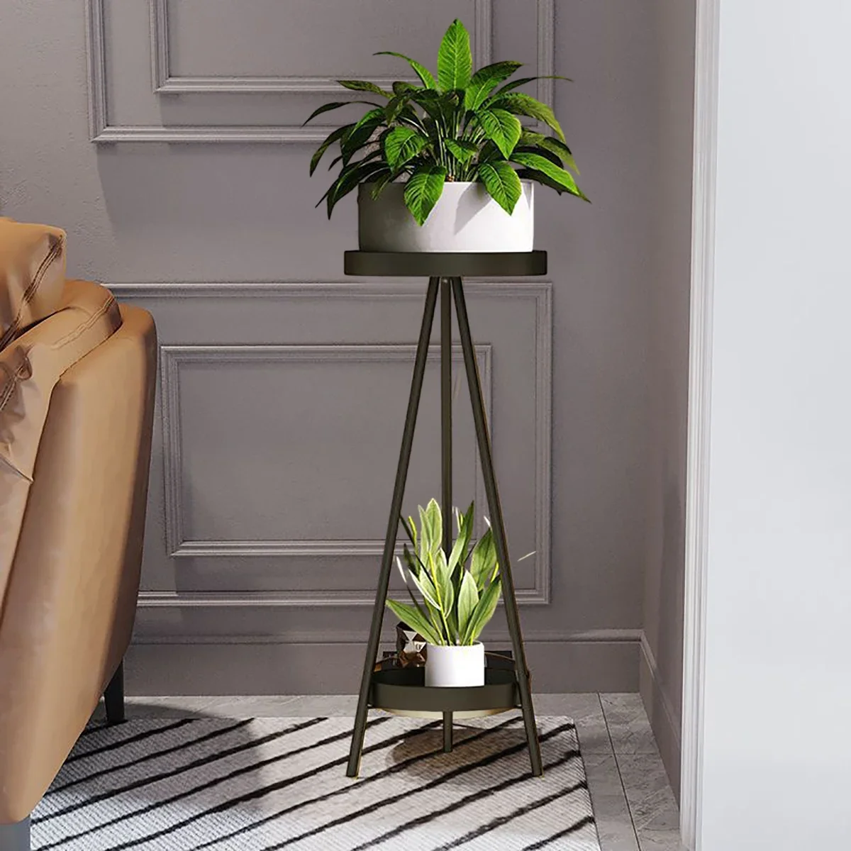 Set med 2 Växtställ i Metall – Stilren Blomsterpiedestal för Inomhusbruk