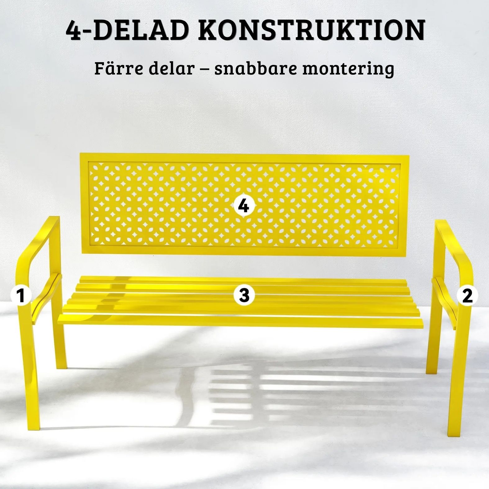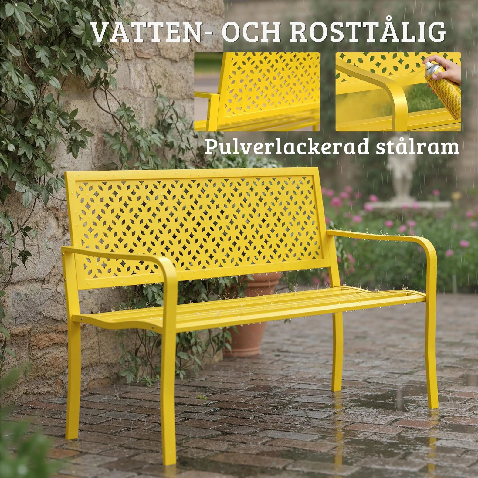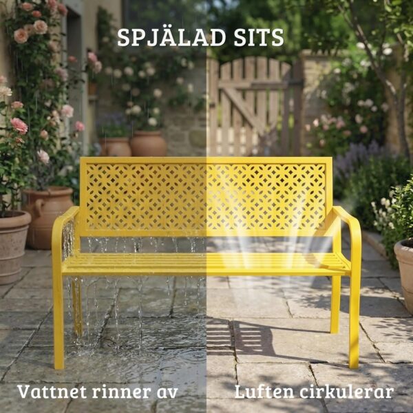 - Vädertålig konstruktion: Pulverlackerad stålram och behandlad rygg ger lång hållbarhet och skydd mot rost
