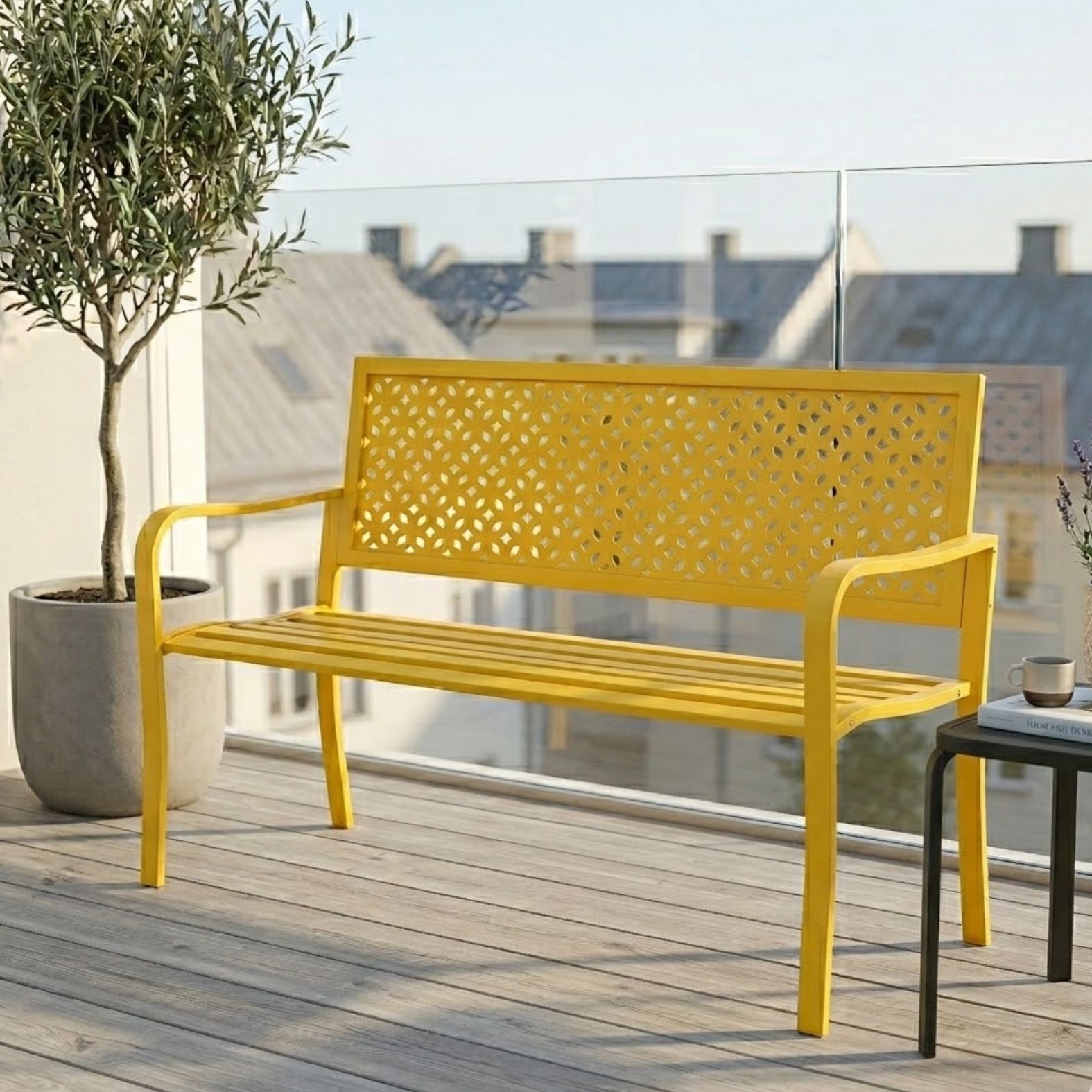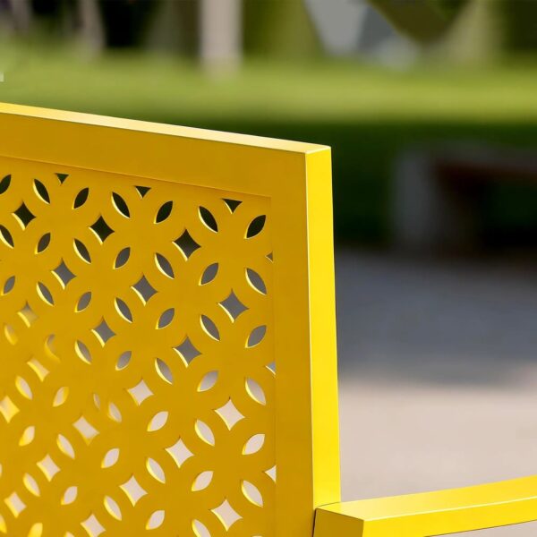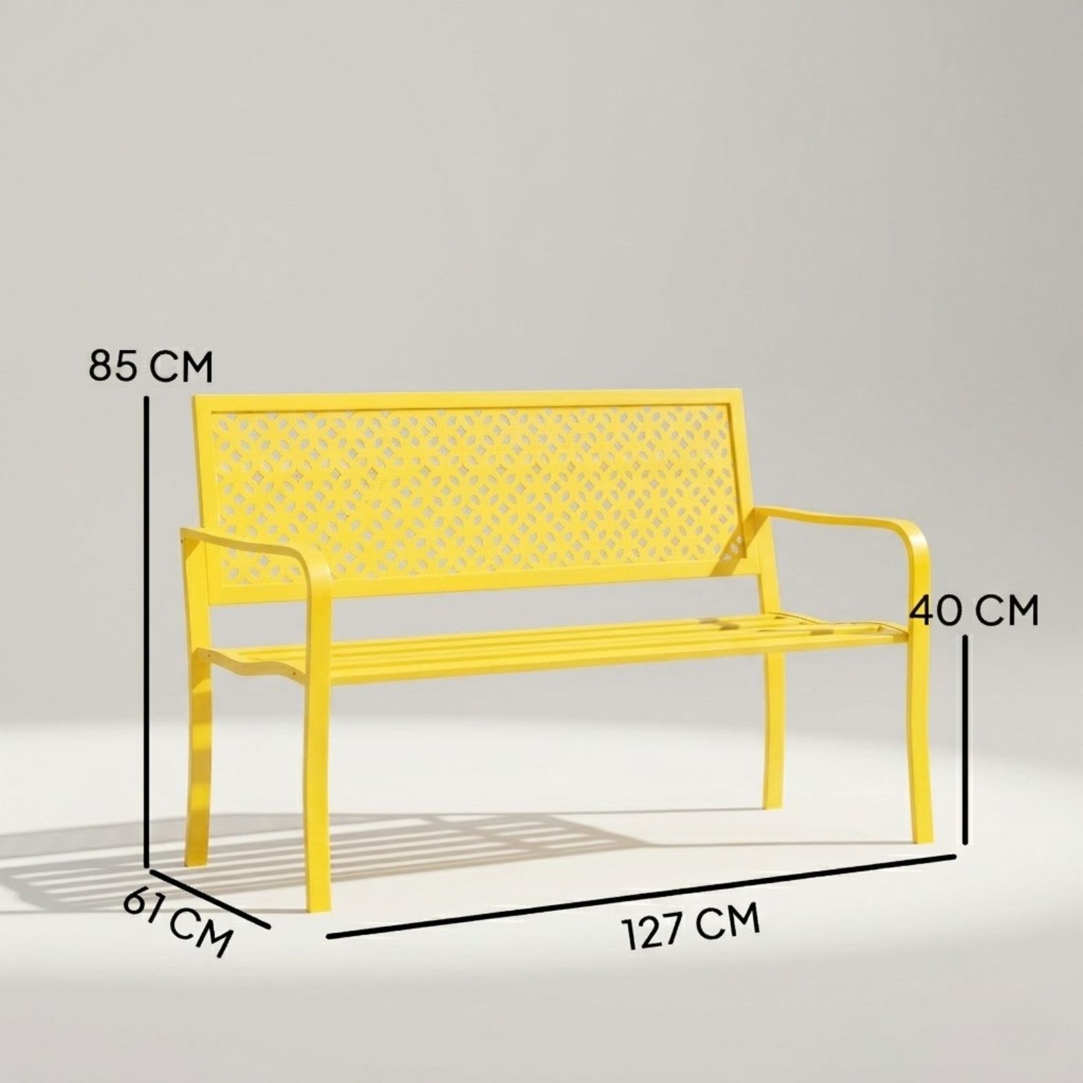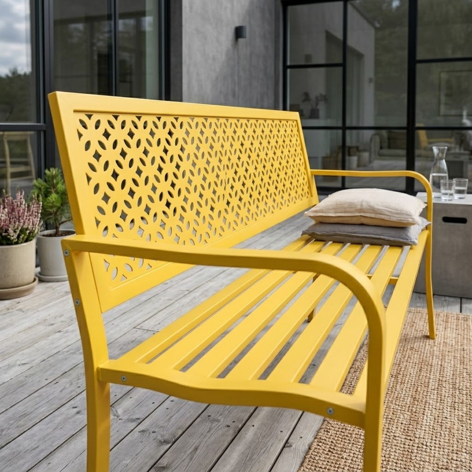 - Vädertålig konstruktion: Pulverlackerad stålram och behandlad rygg ger lång hållbarhet och skydd mot rost
