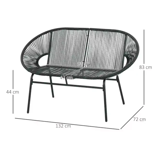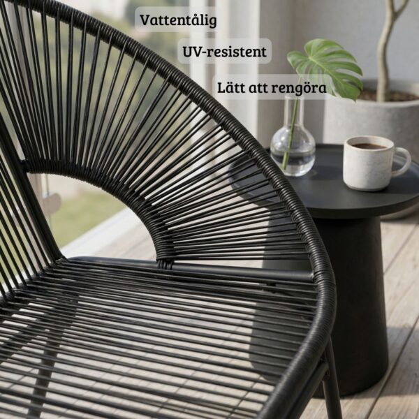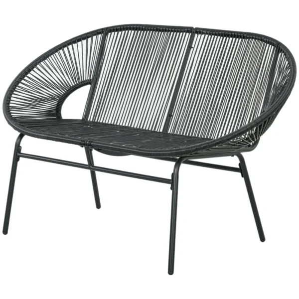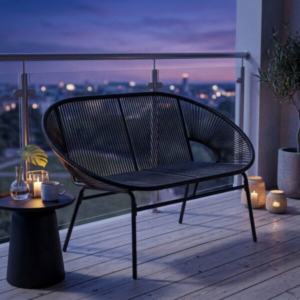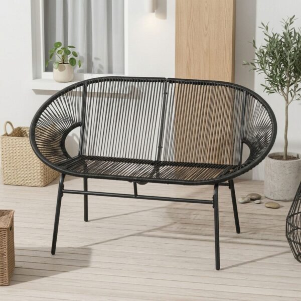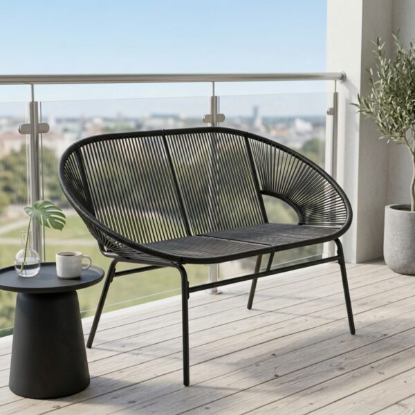 Stilren 2-Sits Trädgårdssoffa i PE-Rotting – Perfekt för Balkong och Uteplats – Svart
