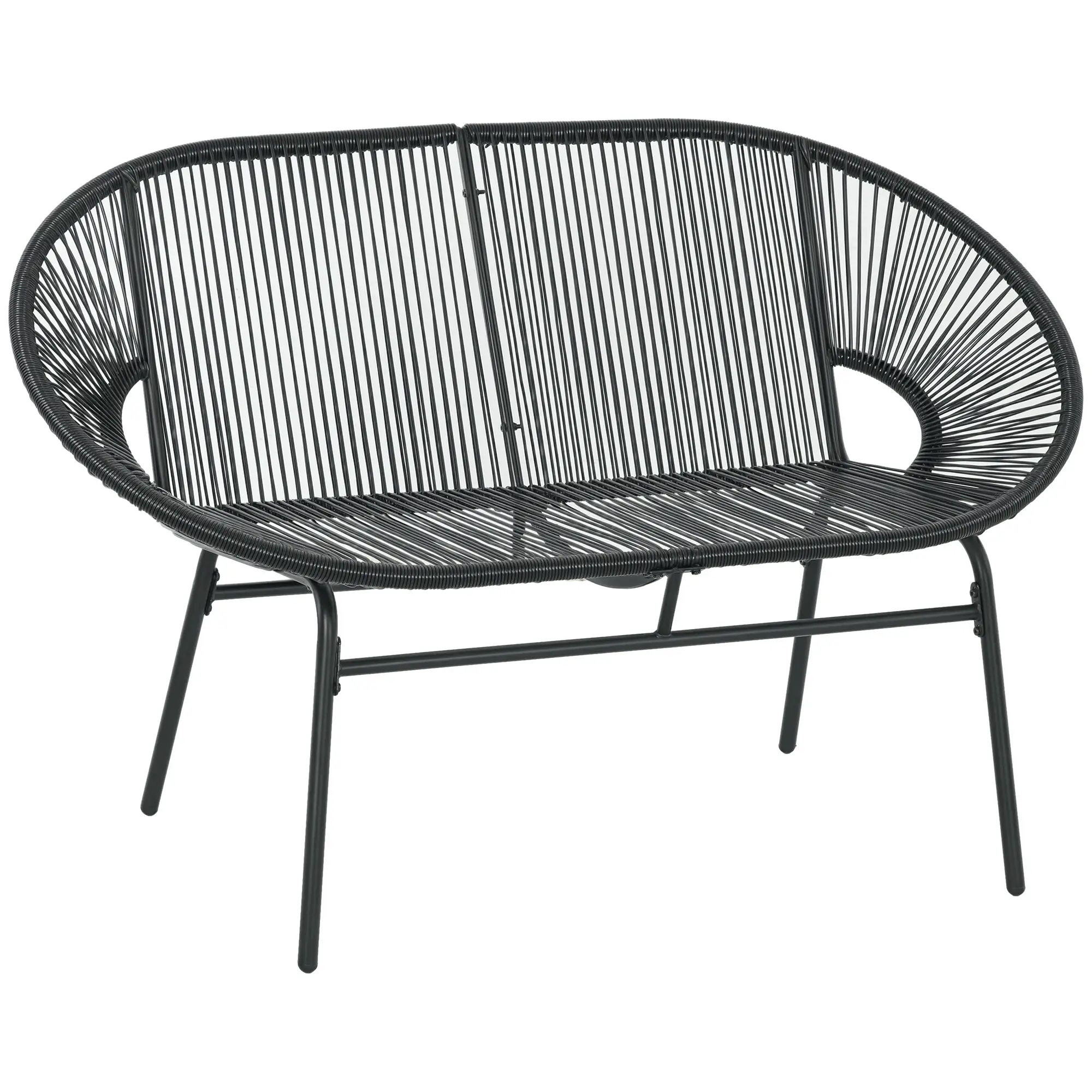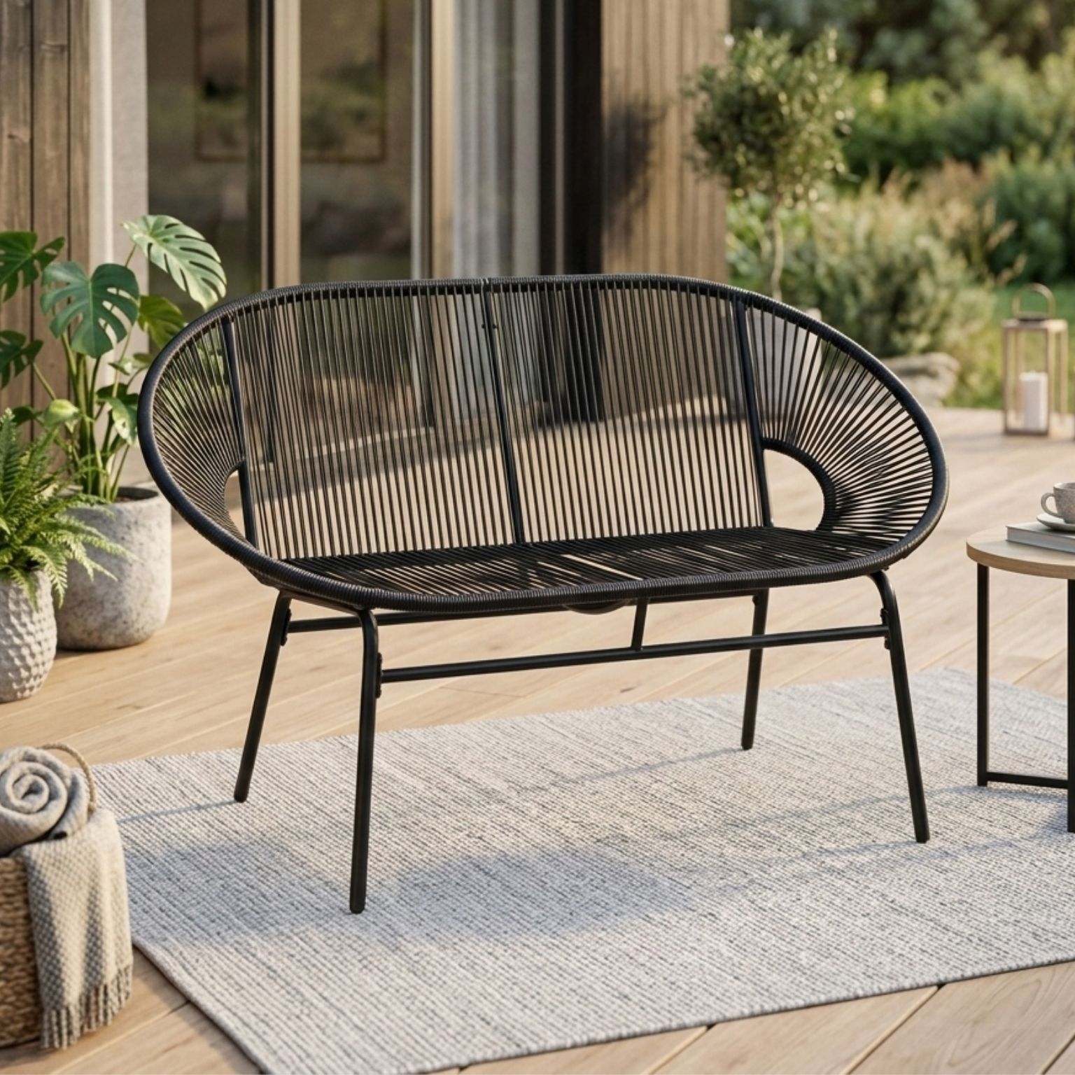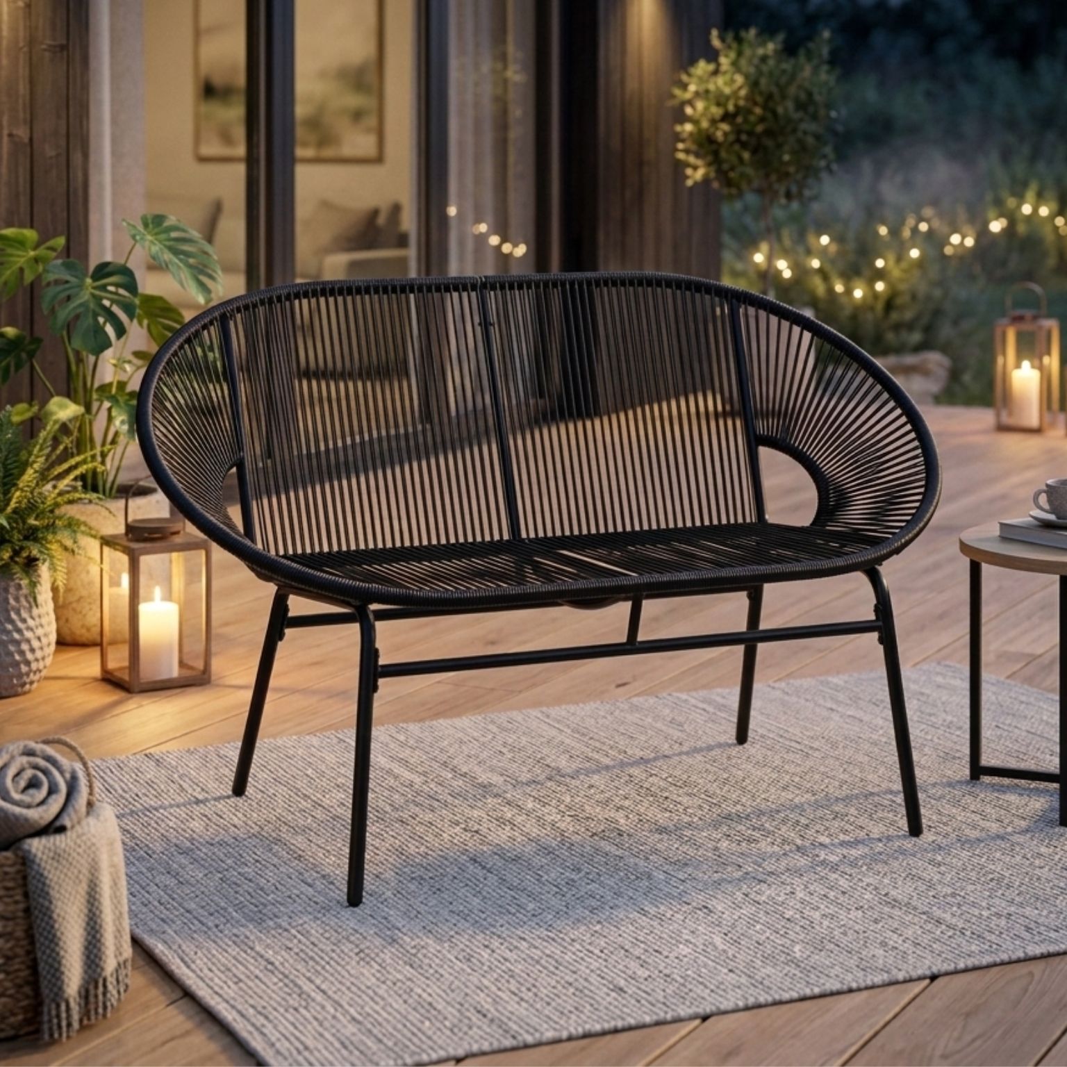 Stilren 2-Sits Trädgårdssoffa i PE-Rotting – Perfekt för Balkong och Uteplats – Svart