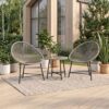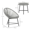 De ovala stolarna är tillverkade med flexibla PE-rottinglinor som ger ett bekvämt stöd och ett ventilerande, luftigt sittande. Den robusta stålramen med pulverlackering ger stabilitet och lång hållbarhet, medan de justerbara fotfötterna hjälper möblerna att stå stadigt även på ojämna underlag.