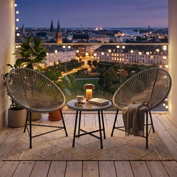 Skapa en avslappnad och stilfull plats utomhus med detta eleganta balkongset i modern Acapulco-stil