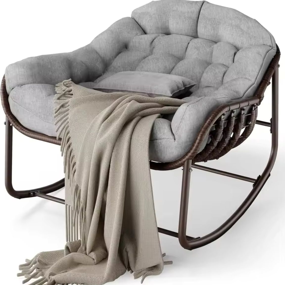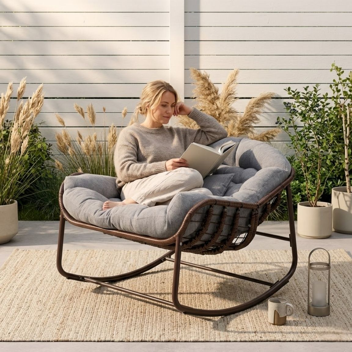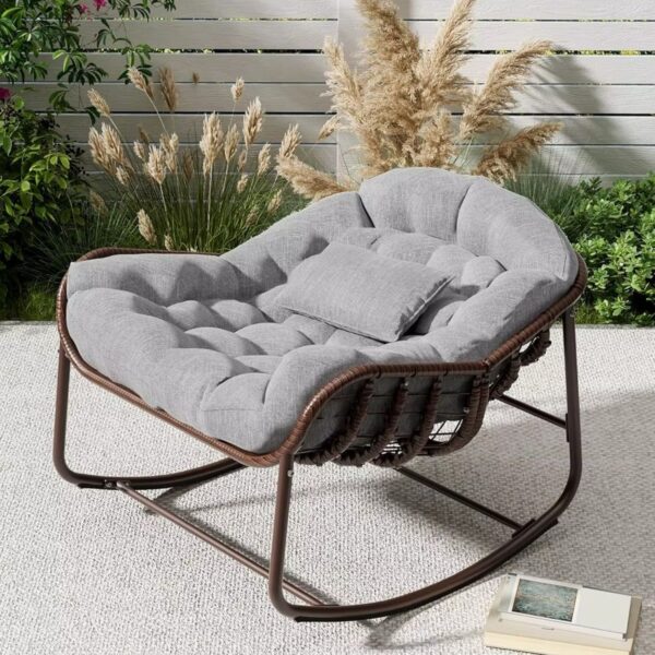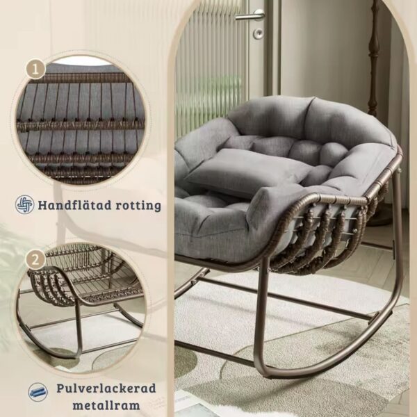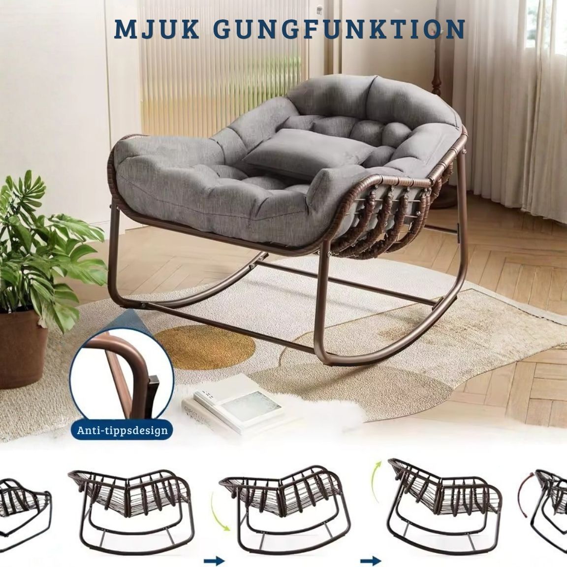 Stor Gungande Loungefåtölj i Konstrotting – 15cm Tjock Dyna – För Inomhus och Utomhus – Grå