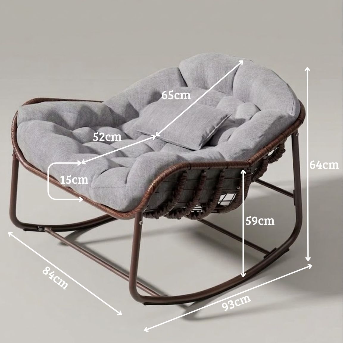 Stor Gungande Loungefåtölj i Konstrotting – 15cm Tjock Dyna – För Inomhus och Utomhus – Grå Stor Gungande Loungefåtölj i Konstrotting – 15cm Tjock Dyna – För Inomhus och Utomhus – Grå