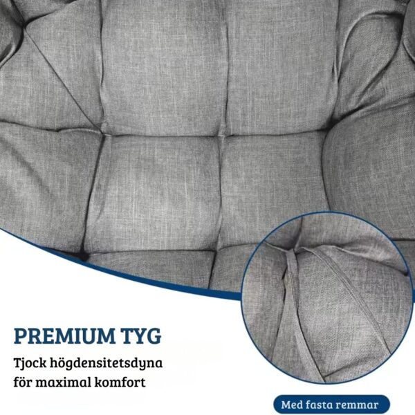 Skapa en avslappnad och stilren plats för vila med denna eleganta gungstol i modern äggformad design. Den kombinerar hög komfort med stabil konstruktion och passar perfekt på uteplatsen, balkongen, i trädgården eller i hemmet.