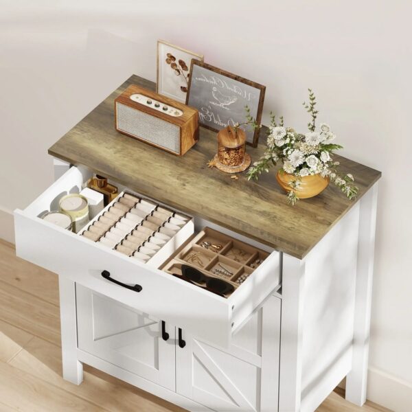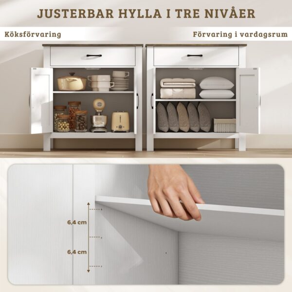 • Smart förvaring: Bred låda och skåp med dubbeldörrar för enkel organisering av porslin och tillbehör