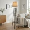 • Modern golvlampa med två integrerade hyllor för praktisk förvaring