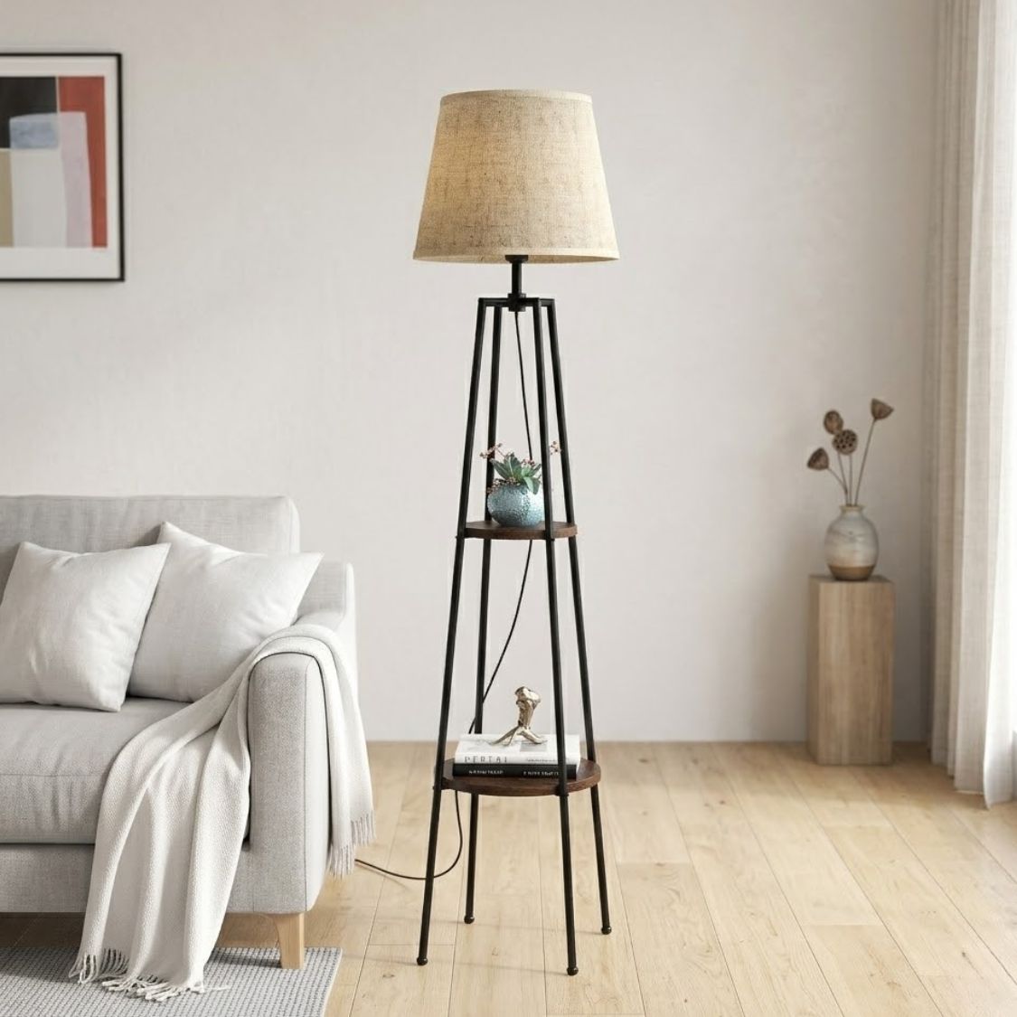 Unik Golvlampa med Hyllor – Stilren Belysning med Förvaring i Trä & Metall - 166 cmUnik Golvlampa med Hyllor – Stilren Belysning med Förvaring i Trä & Metall – 166 cm