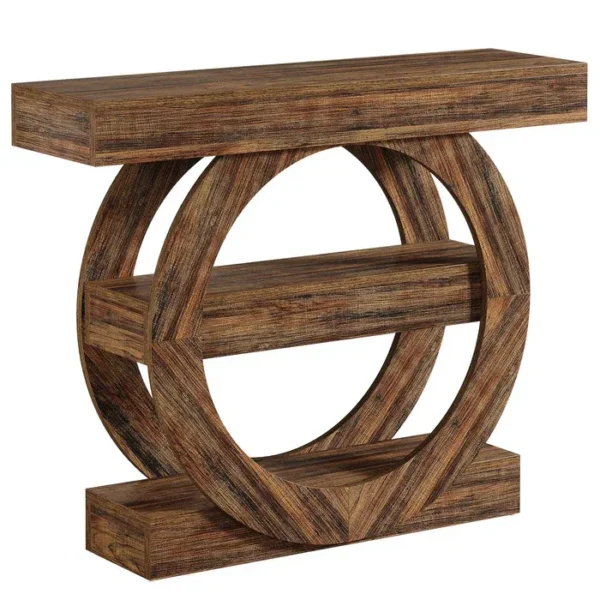 - Rustik charm: Ge ditt hem värme med detta rustika konsolbord i tre nivåer. Den träliknande ytan passar perfekt med lantlig eller traditionell inredning och gör bordet till ett stilfullt alternativ som avlastningsbord i hallen, som sidobord i korridoren eller bakom soffan.