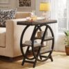 - Elegant sidobord med matt svart eller guldfärgad metallram och rustik brun eller vit bordsskiva